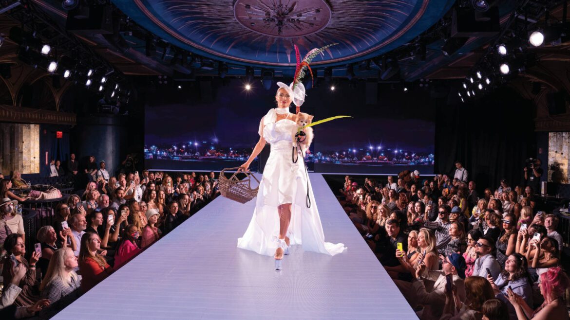 Models and pets strutted the runway in couture outfits that not only sparkled but symbolized meaningful causes, from animal welfare to women’s empowerment. ELSYIAN Founder and Publisher Karen Floyd said as she welcomed a packed Sony Hall, “Ripples create waves, and waves create change.”