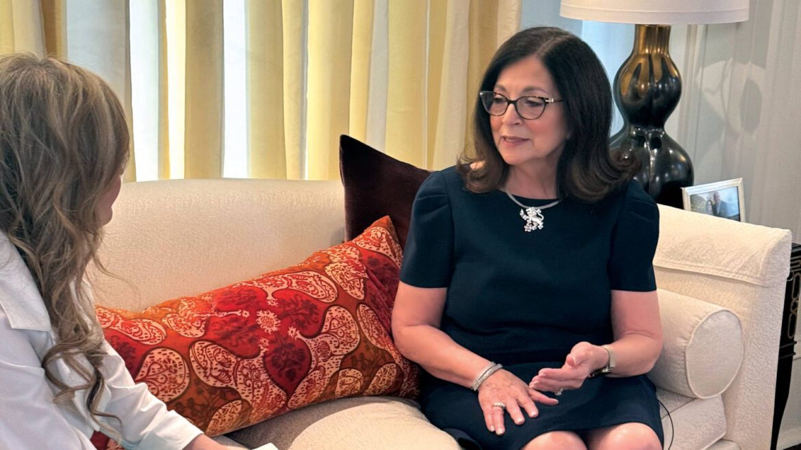 Anita Zucker at home; she sits by a desk that is very sentimental to her as it had belonged to her mother, Rose. Photograph by Michael Paniccia.