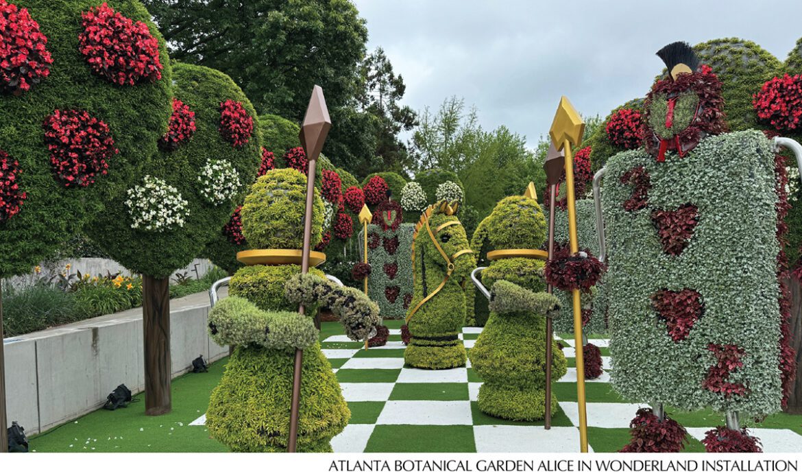 One of the most talked-about recent examples is “Alice’s Wonderland” at the Atlanta Botanical Garden. This fantastical installation brings Lewis Carroll’s whimsical world to life through monumental living sculptures. A 25-foot-tall White Rabbit, a towering Queen of Hearts, and a Cheshire Cat crafted from vibrant flora invite guests to journey down the rabbit hole into a garden of surreal delight. The exhibit’s scale and imagination, paired with intricate horticultural artistry, make it one of the most Instagrammable and enchanting garden installations in the world.