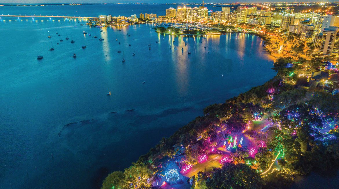 endeavor to make it outside. The garden pathways are artistically lit, with photo opportunities along the way. Food and libations from Sarasota’s finest restaurant vendors are available for all ages. This event creates a joyous and warm atmosphere for family bonding and the creation of holiday memories.