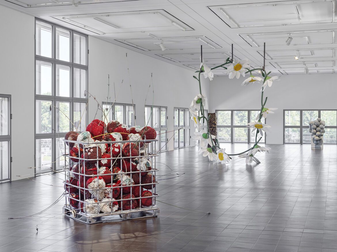 The exhibition space itself intensified the drama. Located in the airy Galerie der Gegenwart, the gallery’s wraparound windows flooded the sculptures with light, allowing their glittering surfaces to oscillate between seductive beauty and unsettling decay. Even visitors entering the museum encountered Ryan’s work unexpectedly: two sculptures hovered above the grand staircase of the historic main entrance, their contemporary irreverence sharply contrasting with the building’s stately Wilhelminian architecture.