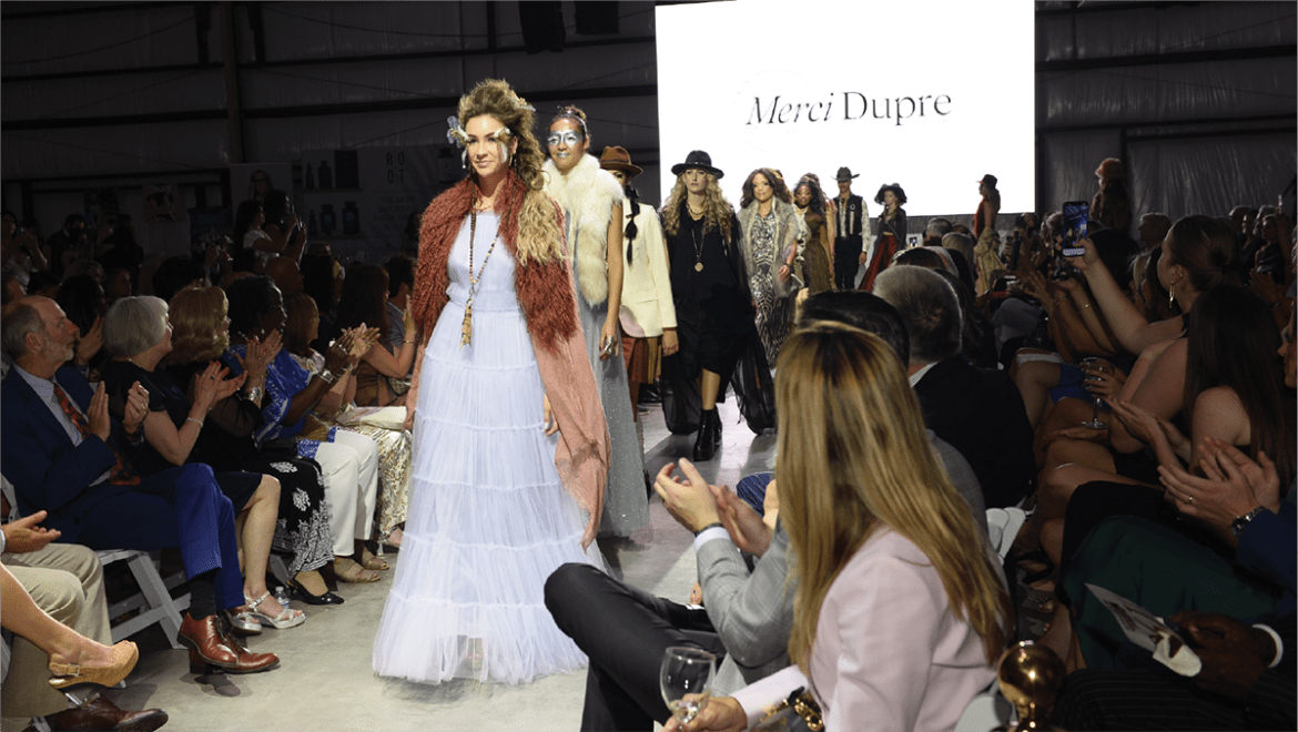 During the show, models walked with adoptable furbabies from the Spartanburg Humane Society, creating a powerful visual narrative of compassion and innovation. Each garment represented the brand’s dedication to wellness, sustainability, and high design. The evening concluded with a live auction of the looks worn on the runway, with all proceeds benefitting the Spartanburg Humane Society.