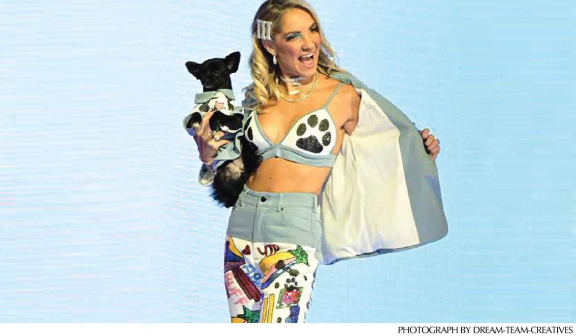 By her side was Little Dog, a papillon-chihuahua mix, whose presence added an extra layer of charm to the dynamic duo’s runway moment. The synergy between designer and pup was a picture of pure delight, exuding the kind of confidence and charisma that captivated the audience. Glas Odom’s ability to translate joy into fashion made her the perfect ambassador for this cause—after all, Queen of Sparkles is a brand committed to helping every woman (and, in this case, every furbaby) shine a little brighter.
