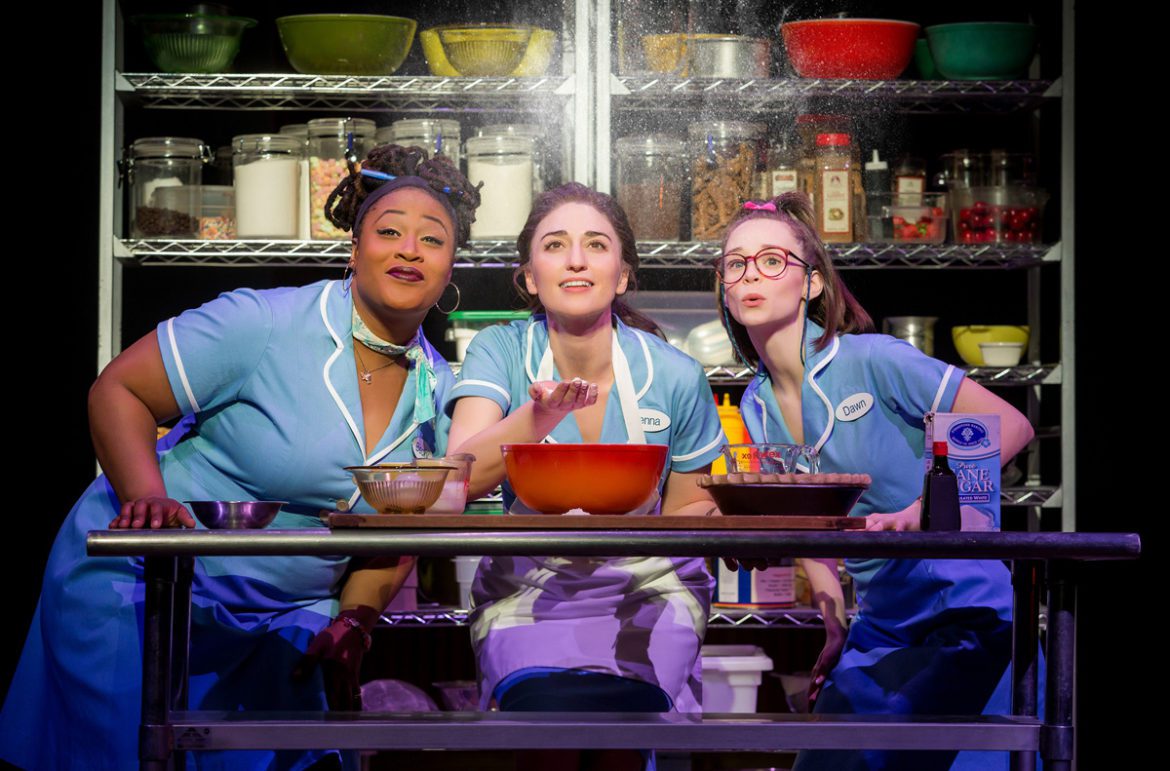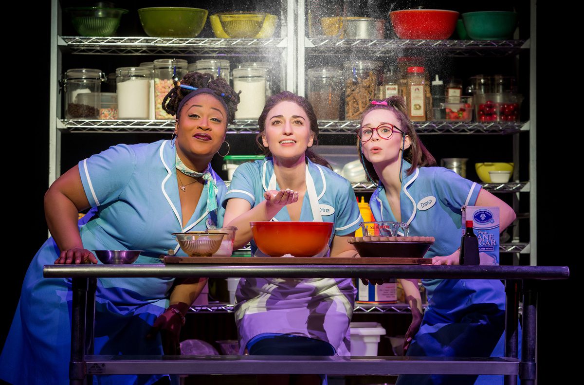 Charity Angel Dawson as Becky, Sara Bareilles as Jenna and Caitlin Houlahan as Dawn in Waitress.